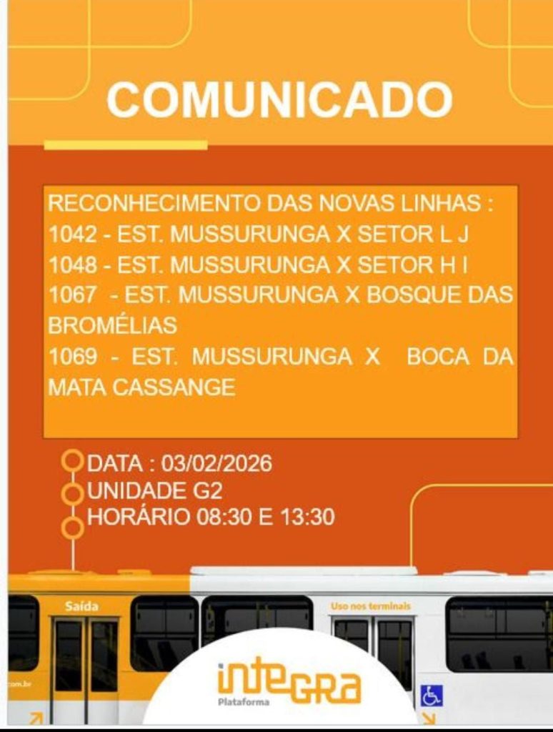 De acordo com o comunicado, os motoristas que devem operar essas rotas irão realizar o reconhecimento prévio dos itinerários, procedimento comum antes do início efetivo de uma operação ou de mudanças na gestão das linhas. A atividade está programada para o dia 3 de fevereiro de 2026, com saídas previstas às 8h30 e às 13h30, a partir da Unidade G2.